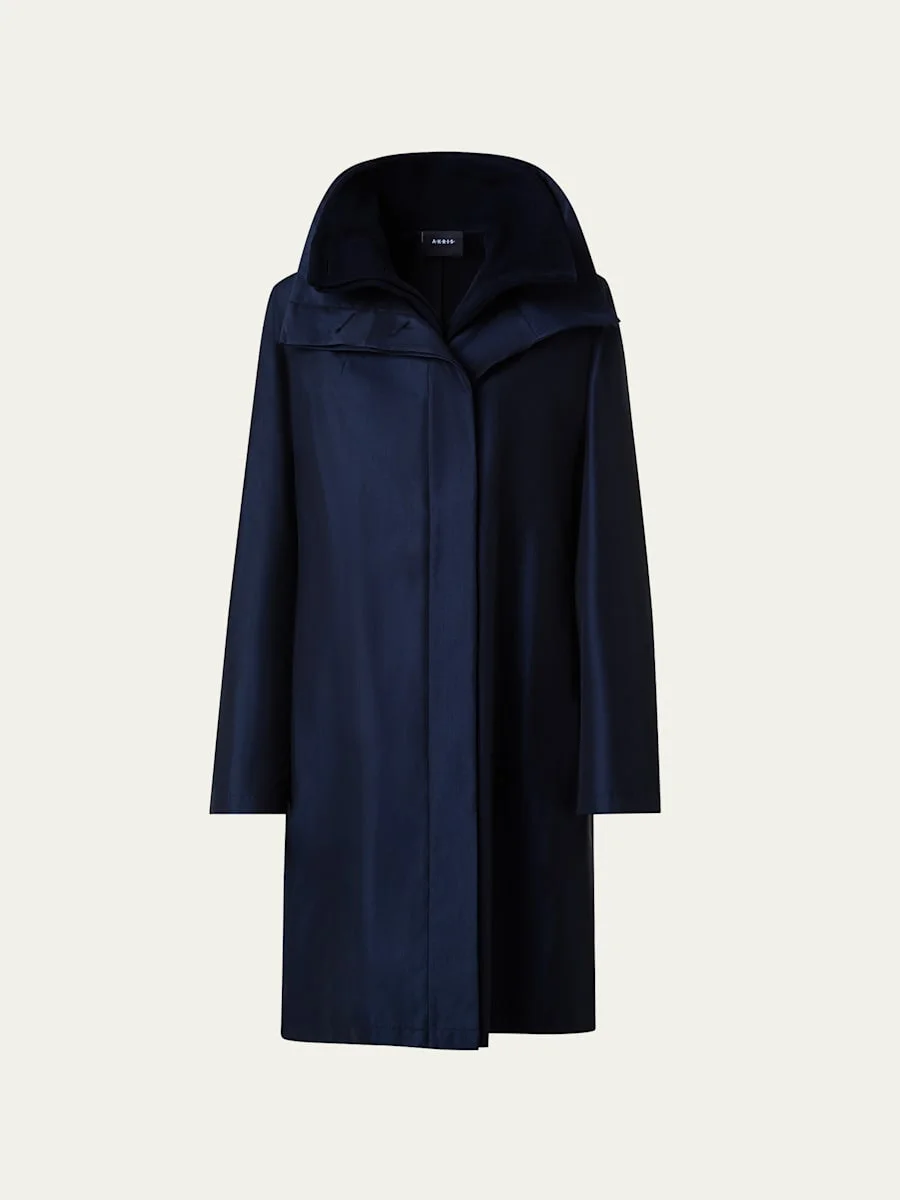 Akris storm system coat. Double-breasted button front. Silk; trim, wool/cashmere/. Lining, cupro. Dry clean. Imported. Model is 5'10"/177cm. Online Inquiries: BGS21_B8KKD| Store Inquiries: #72340