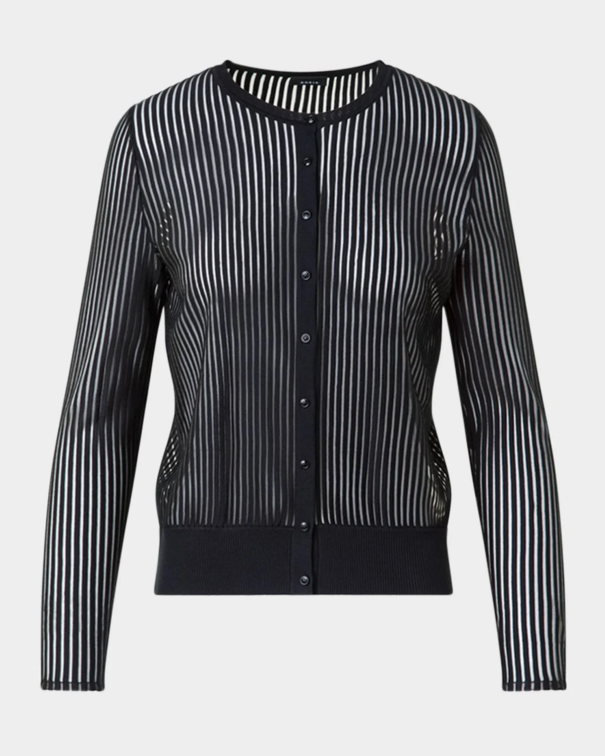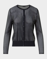 - Akris Knit sheer striped silk-cotton cardigan - Crew neckline - Long sleeves - Classic fit - Hem sits at the hip - Button-front - Silk/cotton/nylon/polyamide - Imported