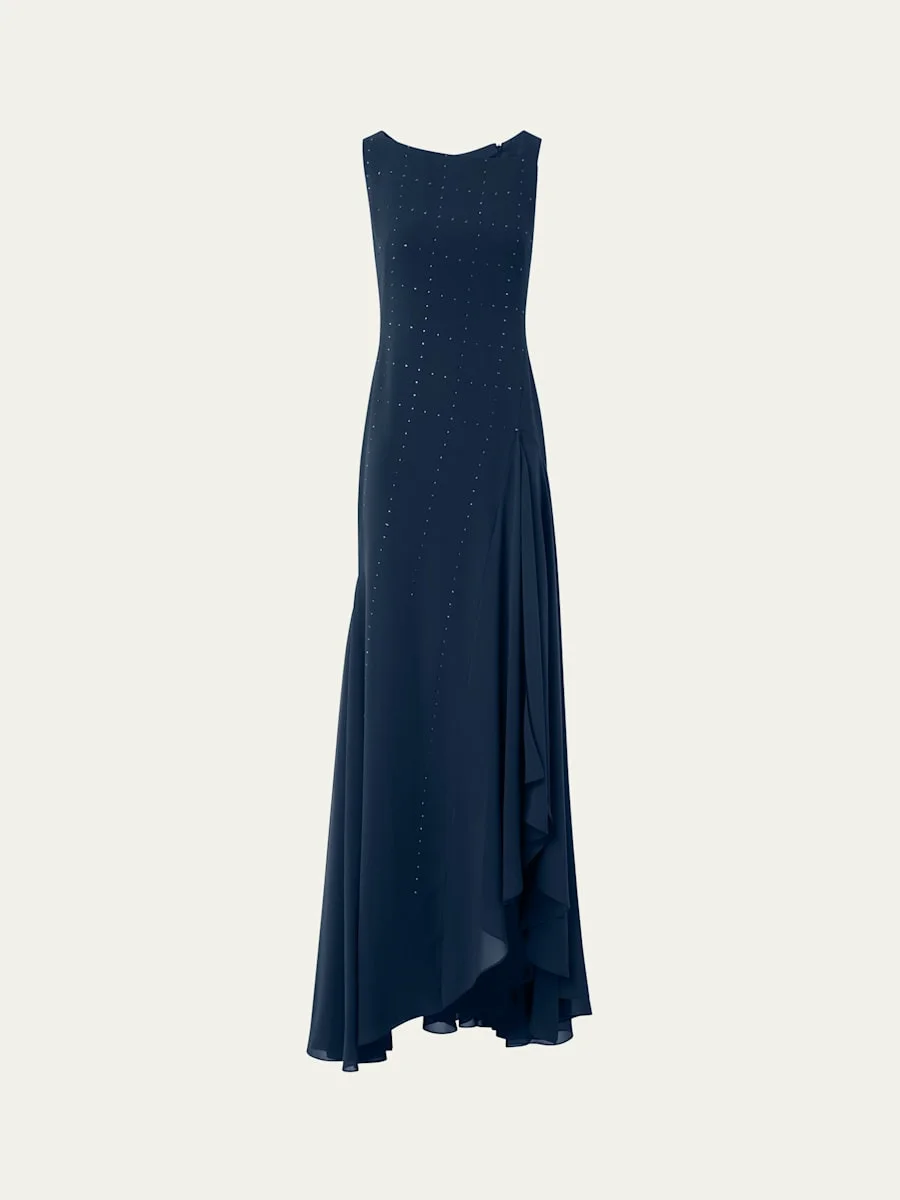 Studded Sleeveless Asymmetric Flared Maxi Dress