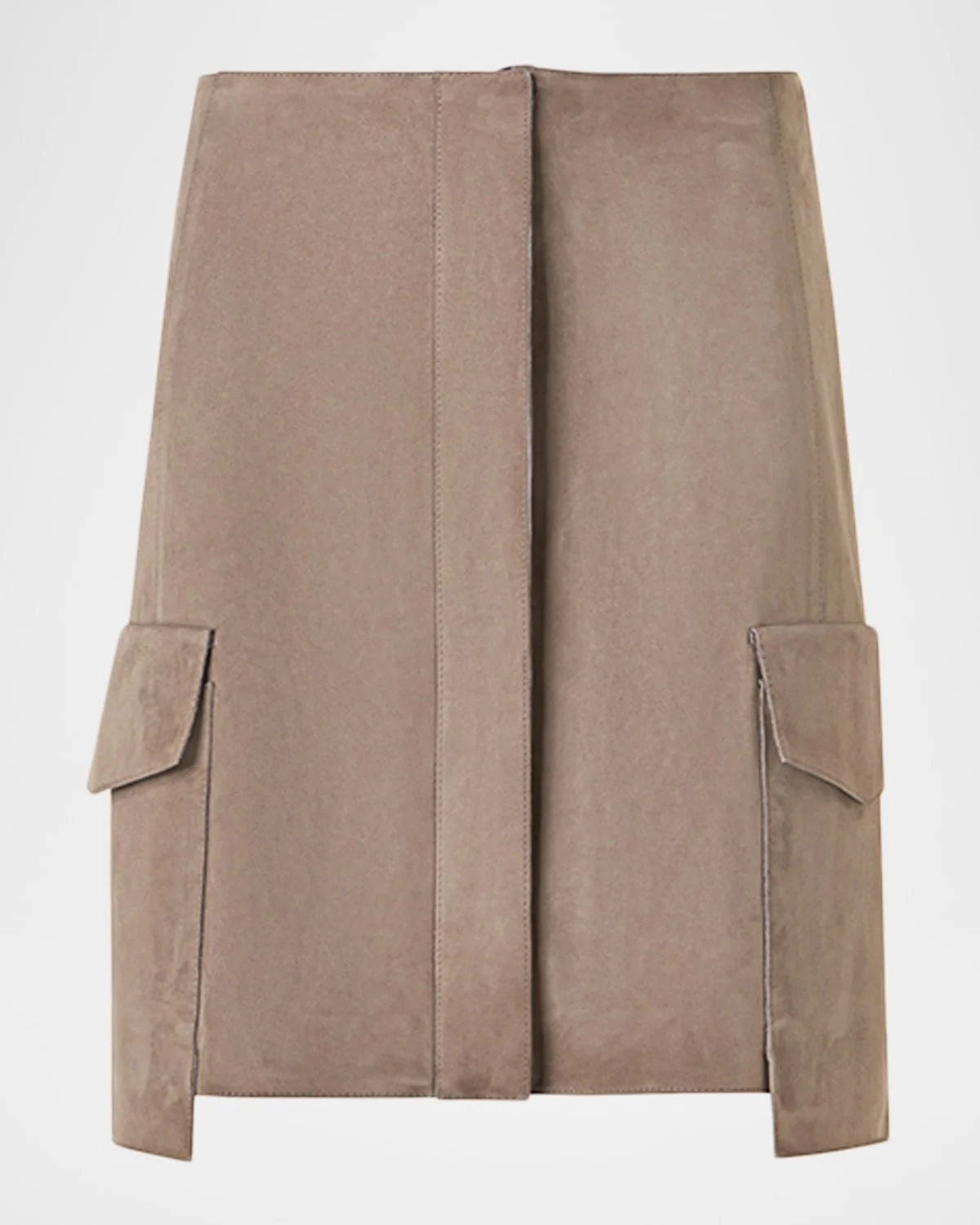 Crafted from supple suede, this skirt from Akris features extended cargo patch pockets on the sides High waist Slight A-line silhouette Mini length Concealed zipper front Suede Lining: Viscose/spandex Dry clean Made in Romania SIZE & FITModel measurements: 5 & apos;10" tallModel is wearing a US size 4/Small