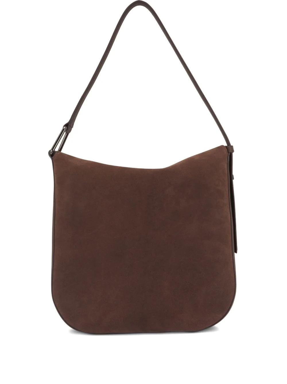 suede shoulder bag Highlights - Brown - Suede - Single shoulder strap - Curved shape - Main compartment Made in United States Composition Outer: Suede 100% SIZE & FIT Measurement DEPTH 4 in(10.1 cm) HEIGHT 14 in(35.5 cm) WIDTH 13 in(33 cm)