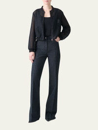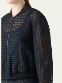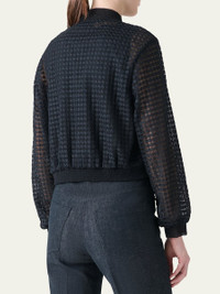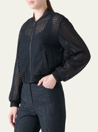 Akris bomber jacket crafted from sheer tulle with flower grid embroidery Baseball collar Long sleeves Hip length Smocked cuffs and hem Zip front closure Polyester Dry clean Made in Romania Online Inquiries: BGS21_B9UF7| Store Inquiries: #4970775