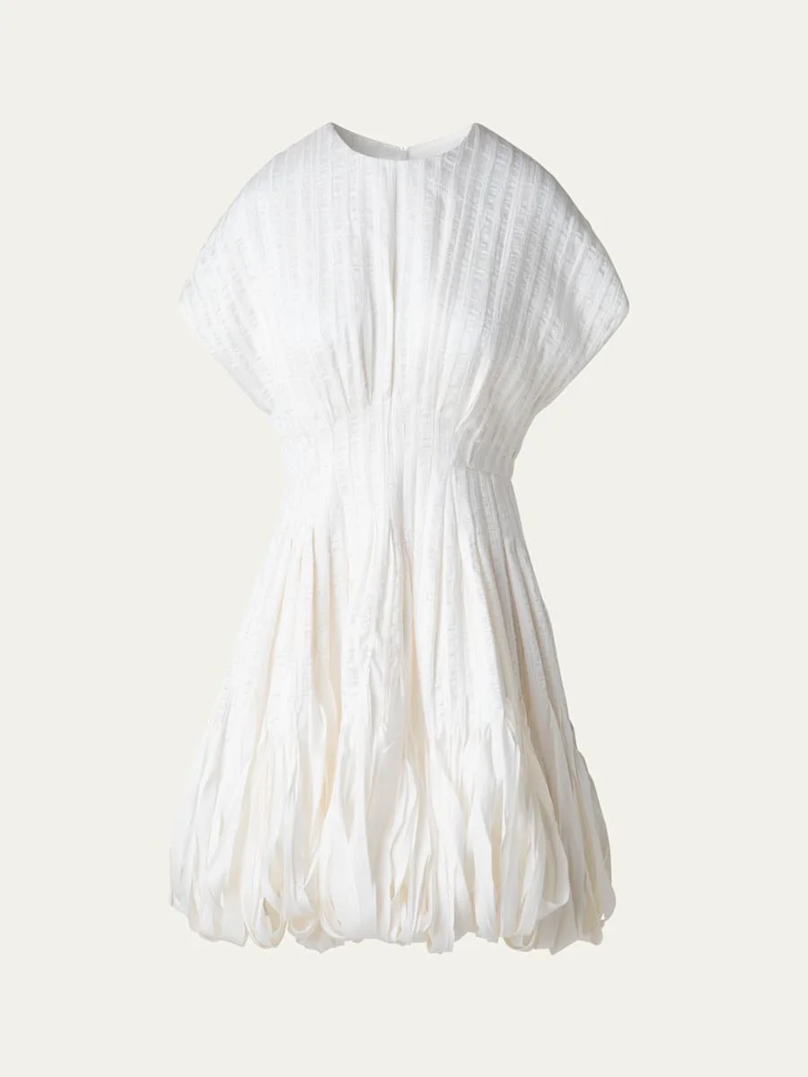 Akris silk-blend dress in a textured voluminous silhouette Round neckline Cap sleeves Hem falls above the knee Flared bubble-hem skirt Invisible back zipper Silk/viscose Lining: Viscose/silk Dry clean Made in Romania Online Inquiries: BGS21_B9QGM| Store Inquiries: #4944427