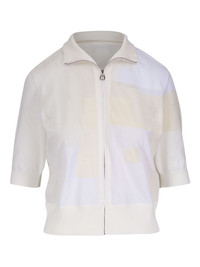 trapezoid jacquard cardigan Highlights - White - Front zip fastening - Drop shoulder - Ribbed cuffs and hem - Branded zip puller Made In United States Composition Cotton 95%, Nylon 5%