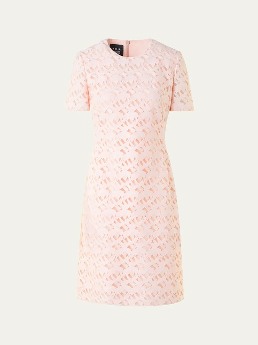 Akris dress featuring intricate techno geometric embroidery on tulle Round neckline Short sleeves Hem hits around the knee Sheath silhouette Back zip Polyester/nylon/polyamide Lining: Viscose/silk Dry clean Made in Romania Online Inquiries: BGS21_B9VFS| Store Inquiries: #4982107