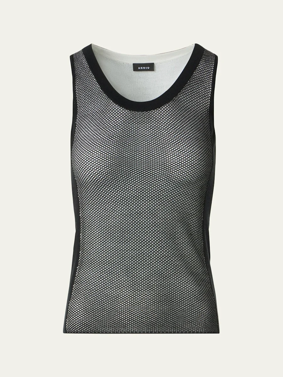 This tank top from Akris is crafted from twotone grid mesh knit with ribbed knit side panels Scoop neckline Sleeveless Fitted Pullover style Silk/cotton Dry clean Made in Romania SIZE amp; FITModel measurements: 5'10" tall Model is wearing a US size 4/Small