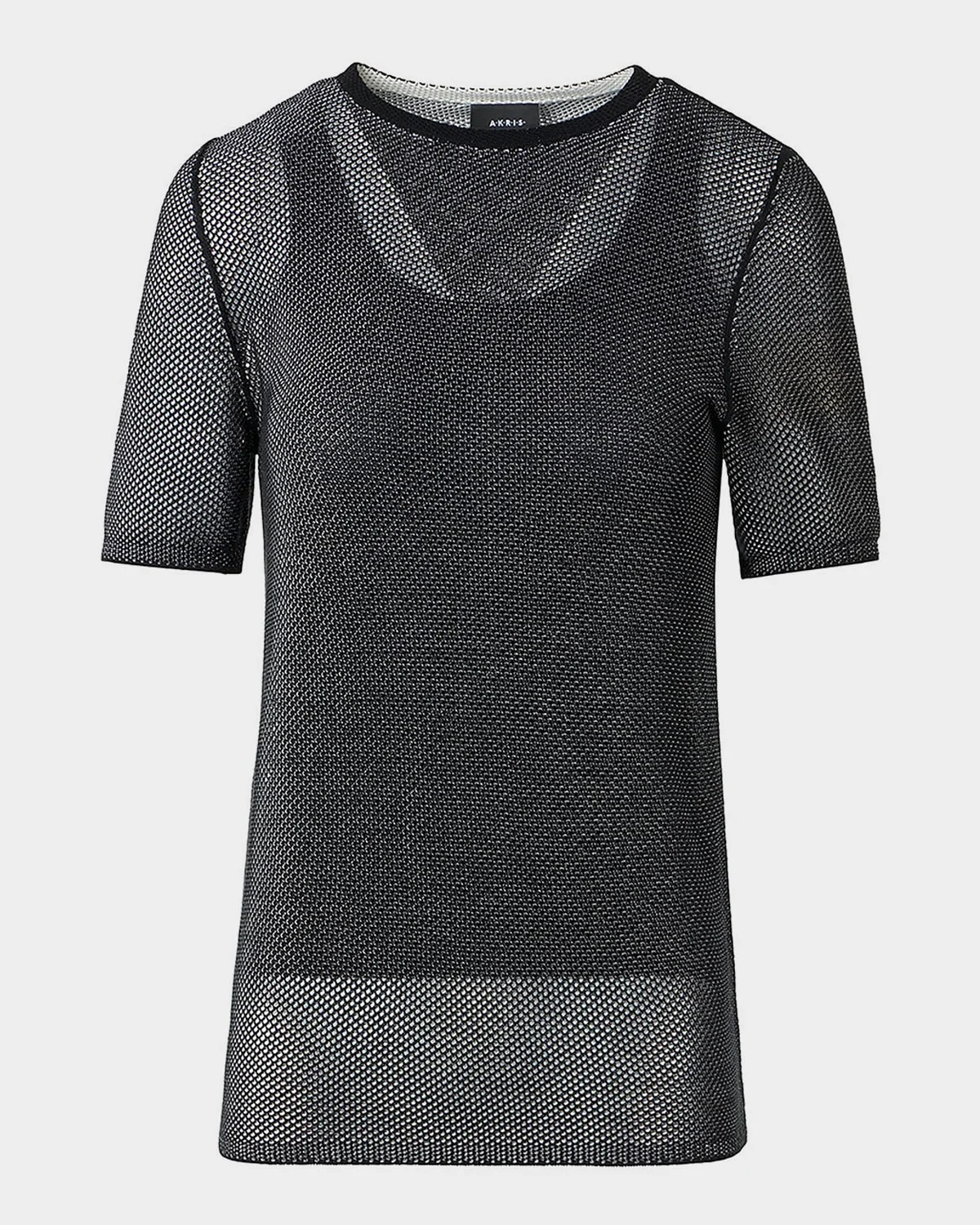 This sweater from Akris is crafted from two-tone grid open knit Crew neckline Short sleeves Boxy fit Hip length Ribbed cuffs and hem Pullover style Silk Lining: Cotton/nylon Dry clean Made in Romania SIZE & FITModel measurements: 5 & apos;10" tallModel is wearing a US size 4/Small