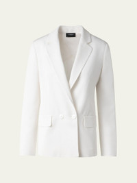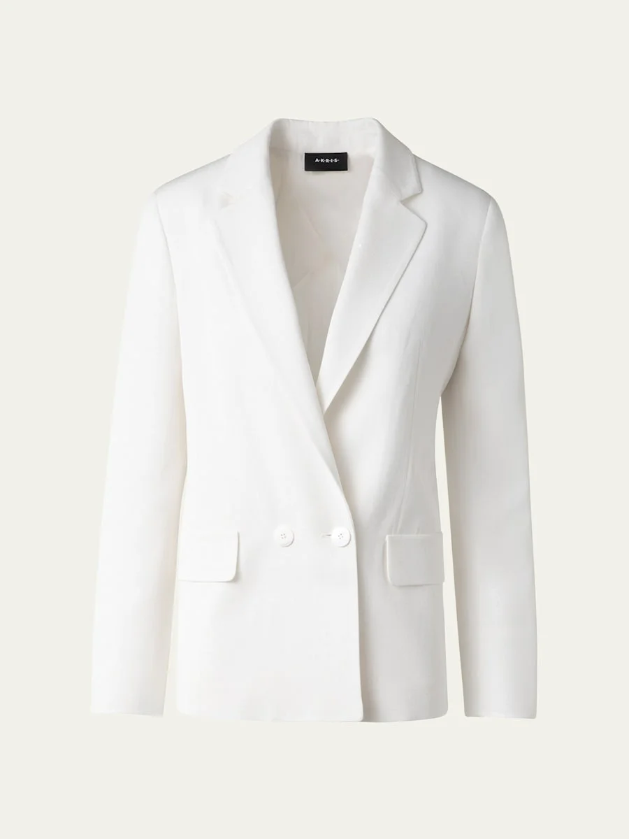 Akris "William" Shantung silk jacket Elongated lapels; double-breasted Long sleeves; button cuffs Boyfriend fit Waist flap pockets Viscose/silk Dry clean Made in Romania Online Inquiries: BGS21_B9JZQ| Store Inquiries: #4888083
