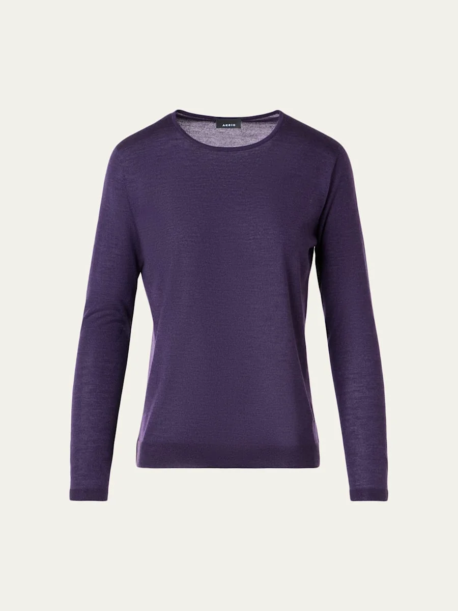 Akris blended wool knit sweater embodies minimalist style and comfort Crew neckline Long sleeves Hip length Relaxed fit Pullover style Wool/nylon/polyamide Made in Romania Online Inquiries: BGS21_BAHQM| Store Inquiries: #5157512