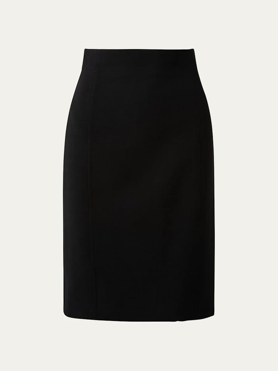 Akris skirt in wool-blend. Natural rise. Pencil silhouette. Hidden side zip. Knee-length. Slit at left. Wool/nylon. Lining, viscose/spandex. Imported of Italian materials. Model is 5'10"/177cm. Online Inquiries: BGS21_B8MAQ| Store Inquiries: #2123055