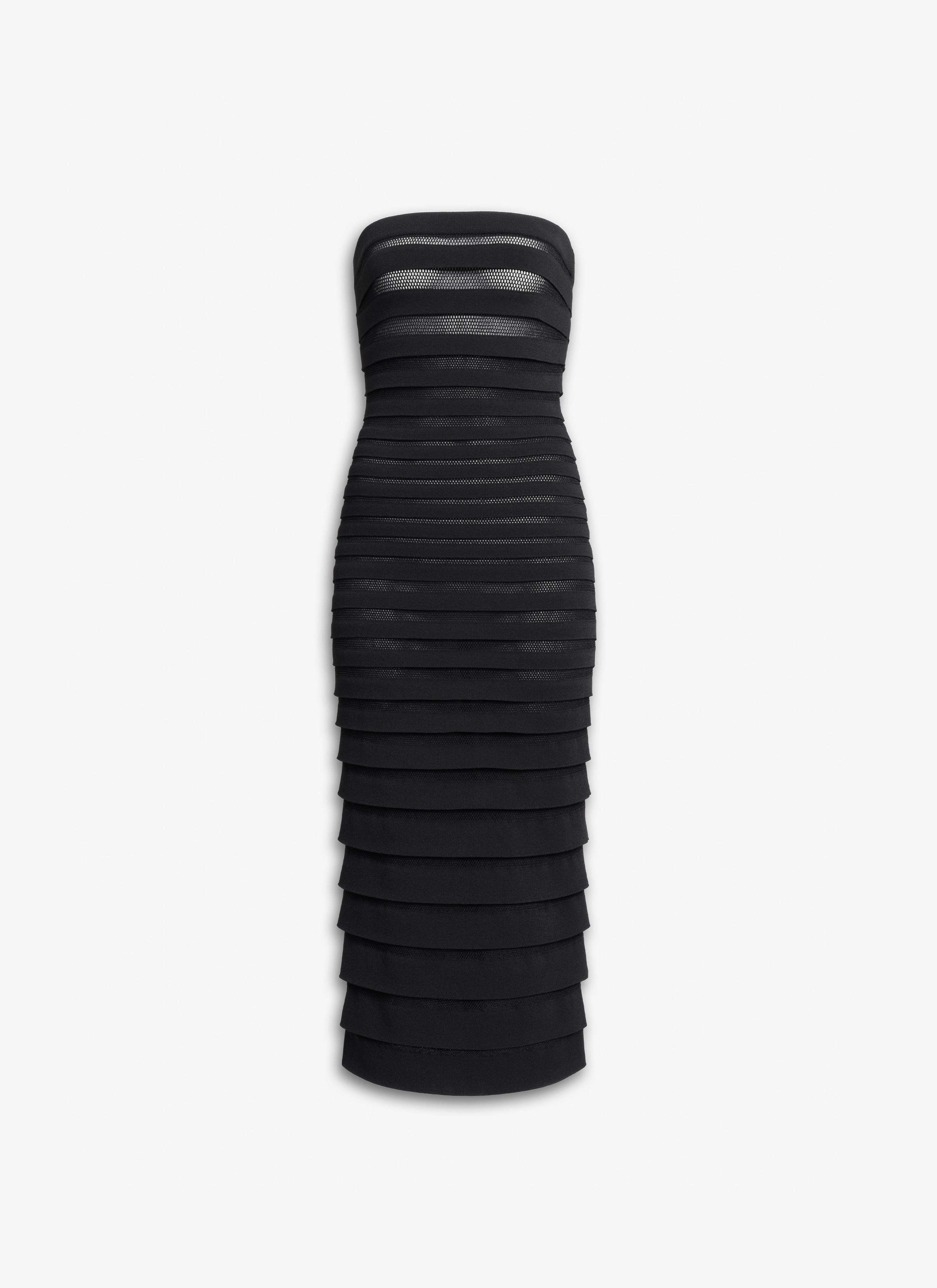 Strapless textured knit dress Fitted cut Sheer effect with opaque and perforated knit stripes, midi length Made in Italy DETAILS COMPOSITION: 80% VISCOSE, 10% POLYESTER, 8% POLYAMIDE, 1% POLYURETHANE, 1% ELASTANE PRODUCT REFERENCE: AA9R2555K009A - 995