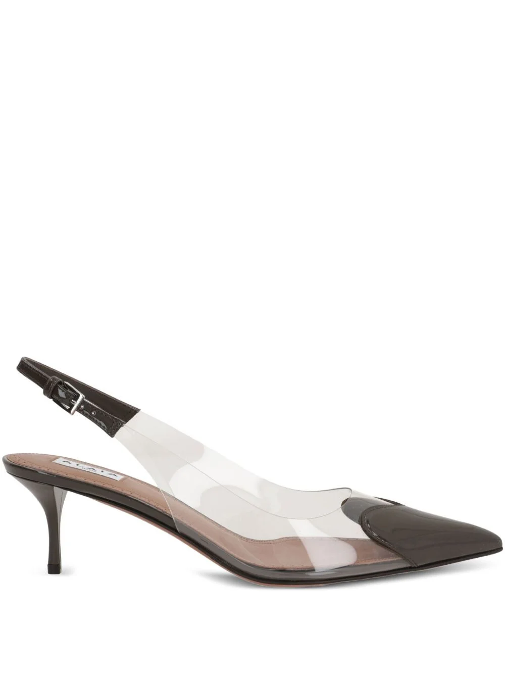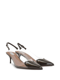 55mm Le Coeur slingback pumps Highlights - Khaki green - Patent leather toe - Heart-shaped detail - Slingback design - Buckle ankle strap - Transparent panel detail Made in Italy Composition Lining: Calf Leather 100% Sole: Calf Leather 100% Outer: Patent Calf Leather 100%, PVC 100% SIZE & FIT Measurement HEEL 2.16 in(5.5 cm)