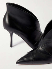 EDITORS'NOTES Alaïa's ankle boots are an exemplary display of the brand's appreciation for sculptural shapes. Crafted from smooth leather, they rest on slim heels and are detailed with tonal topstitching across the pointed toes. Wear yours with a glossy latex dress, as seen on the Spring '24 runway. SIZE & FIT - Fits true to size, take your normal size - Italian sizing DETAILS & CARE - Heel measures approximately 90mm/ 3.5 inches - Black leather (Lamb) - Slip on