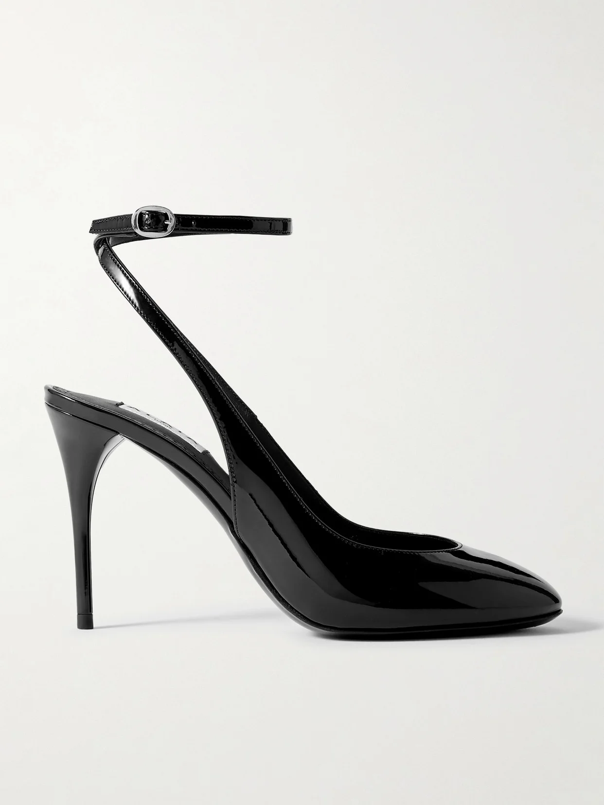 Alaia's pumps have a glamorous, retro feel. Made in Italy from glossy patent-leather, they have almond-shaped toes and slim straps that wrap elegantly around the ankles.