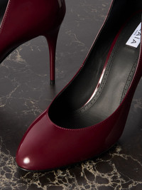 Alaia's pumps are defined by their elongated back that hits well above the ankle. They're crafted from glossy patent-leather and have deeply cut round toes and 90mm heels. Details & Care - Heel measures approximately 90mm/ 3.5 inches - Burgundy patent-leather - Buckle-fastening ankle strap - Designer color: Garnet Red