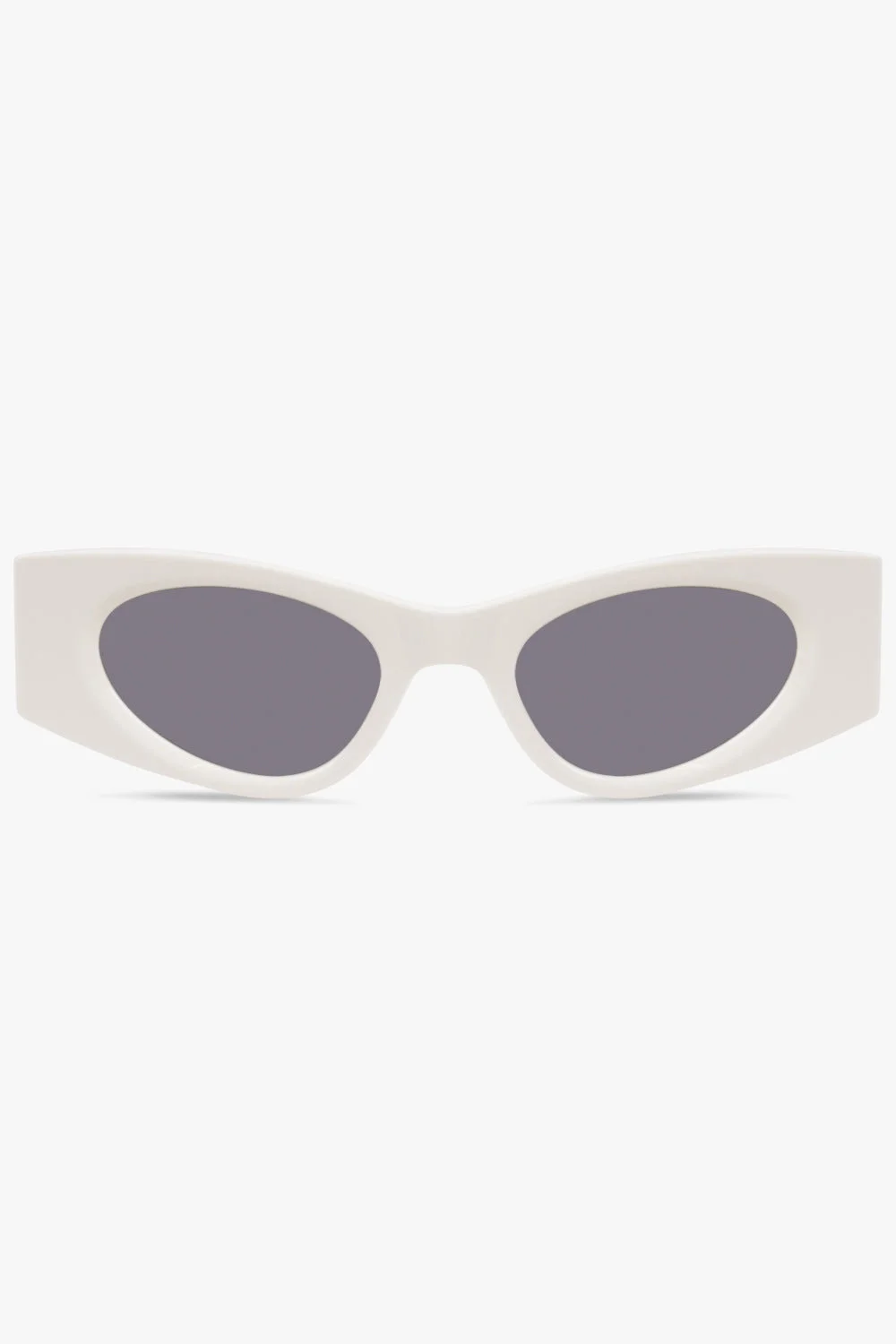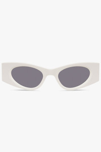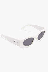 A refined blend of retro and modern design, the Alaia AA0075S Sunglasses feature a sculptural cat eye–meets–rectangular silhouette, crafted in high-shine white acetate for a bold, directional look. The angular frame is balanced by the subtle Alaia logo engraved on the temples, offering a polished finish with minimalist sophistication. - Composition: 100% Acetate Fiber - Cat eye–rectangular hybrid silhouette - Glossy white finish with sculptural lines - Alaia logo engraved at the temples - Lightweight and durable construction Pair with an outfit from our vacation edit for an effortless elevated outfit.