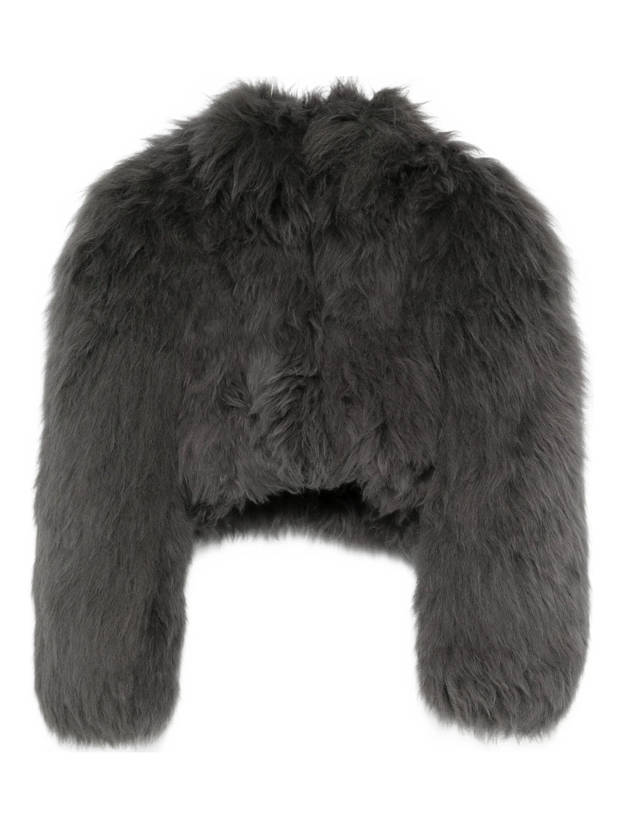 grey lambskin round neck long sleeves cropped concealed front fastening - Color: GREY - Made in: Italy - Designer Style ID: AA9V1185L027B 840 Composition and care Lambskin: 100.0%
