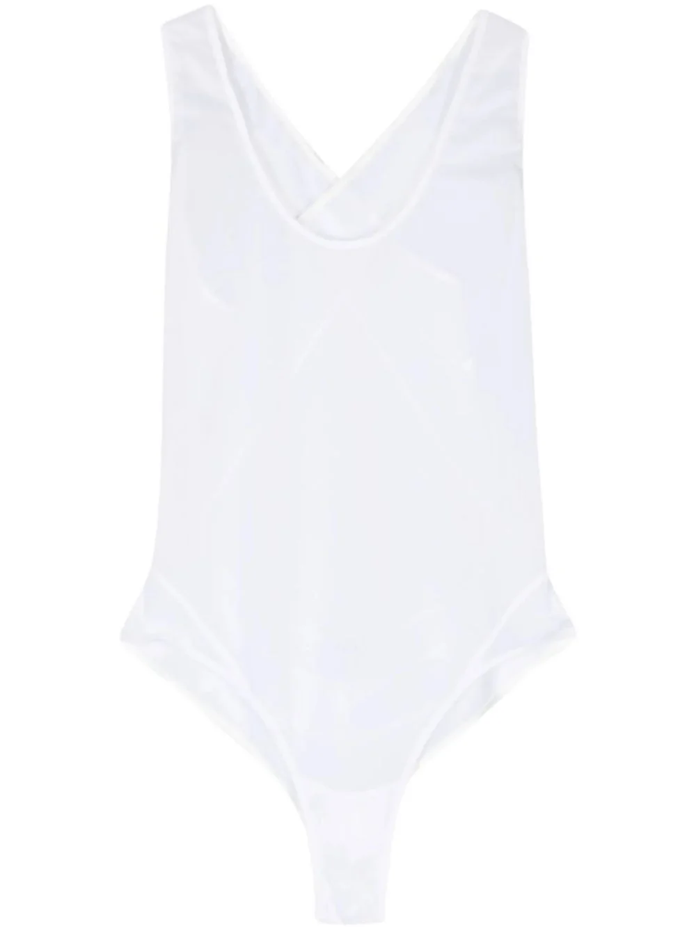 mesh bodysuit ALAIA continues to celebrate silhouettes and craftsmanship that define the Maison. Made from stretch tulle, it's designed with straps that cross and reveal the back for a daring look. Highlights - White - Mesh design - Scoop neck - Rear criss-cross straps - Sleeveless - Open back - Concealed press-stud fastening - Unlined - Just a reminder that this piece must be tried on over your own garments. Made in Italy Composition Polyamide 86%, Elastane 14% SIZE & FIT FittingInformation Designed for a close fit throughout Made from a lightweight stretch fabric, this piece offers elasticity and flexibility when worn This piece fits true to size – take your usual size