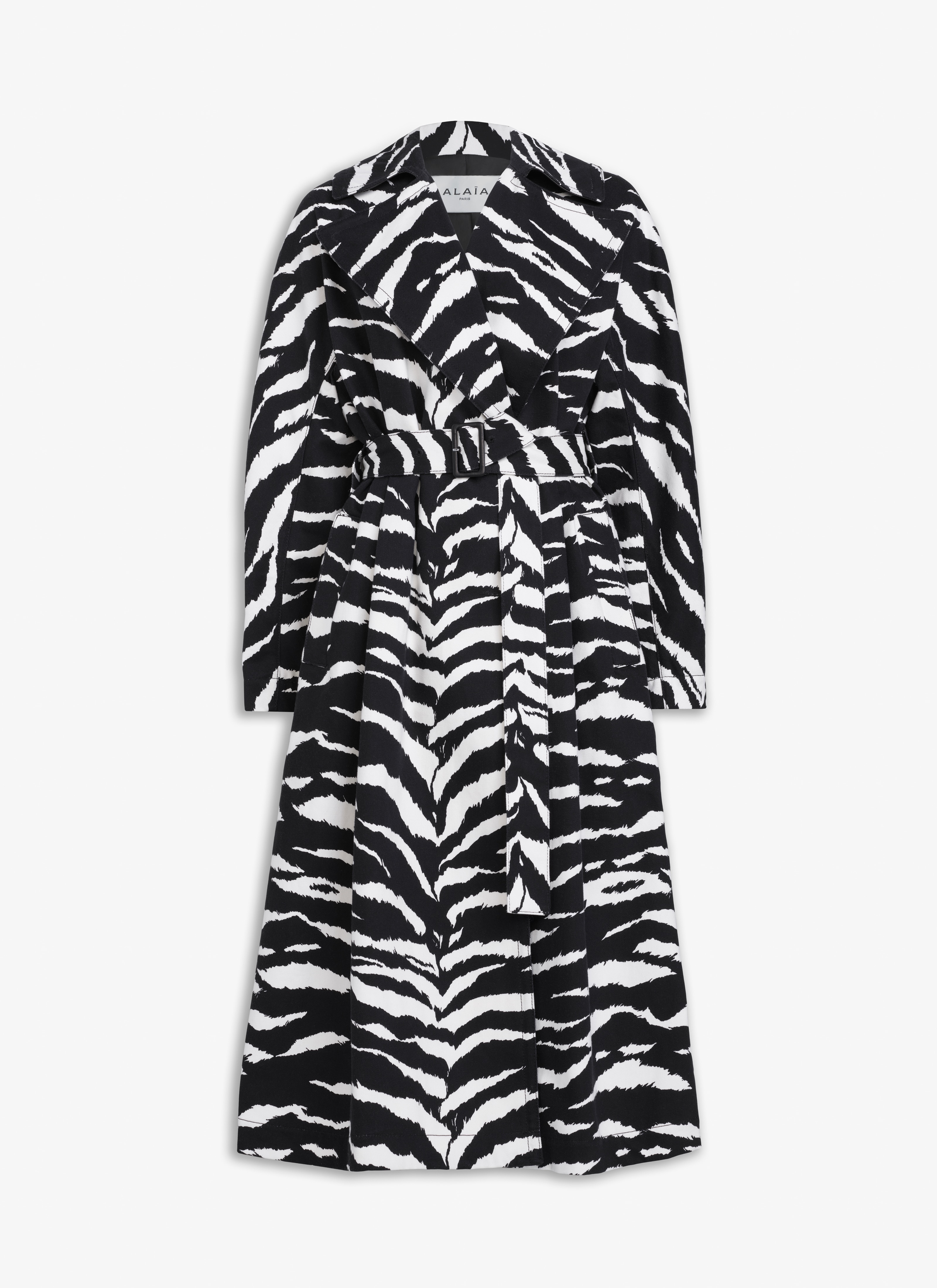 animal pattern trench coat large collar and a belt double breasted made from animal printed denim made in italy DETAILS COMPOSITION: 100% COTTON ADDITIONNAL MATERIAL: 100% LAMBSKIN THE MODEL IS 1M78 TALL AND WEARS A SIZE 36 PRODUCT REFERENCE: AA9M03315T603 - 991