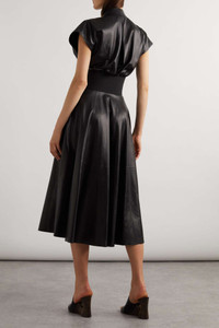 EDITORS'NOTES Alaïa toughens up this black leather dress with a patent, croc-effect belt, recalling the waist-cinching styles that heralded Pieter Mulier's first collection with the label. It has a plunging V-neck framed by capped sleeves and a paneled, flared skirt. Heighten the sculptural look by pairing it with wedges or heels. SIZE & FIT - Fits true to size, take your normal size - Designed for a slightly loose fit, use the belt to cinch in at the waist - Supple, slightly stretchy leather - Model is 177cm/ 5'10" and is wearing a FR 36 DETAILS & CARE - Black leather and patent-leather - Buckle fastenings along front - 100% leather (Lamb); trim: 100% leather (Calf)