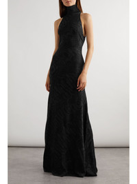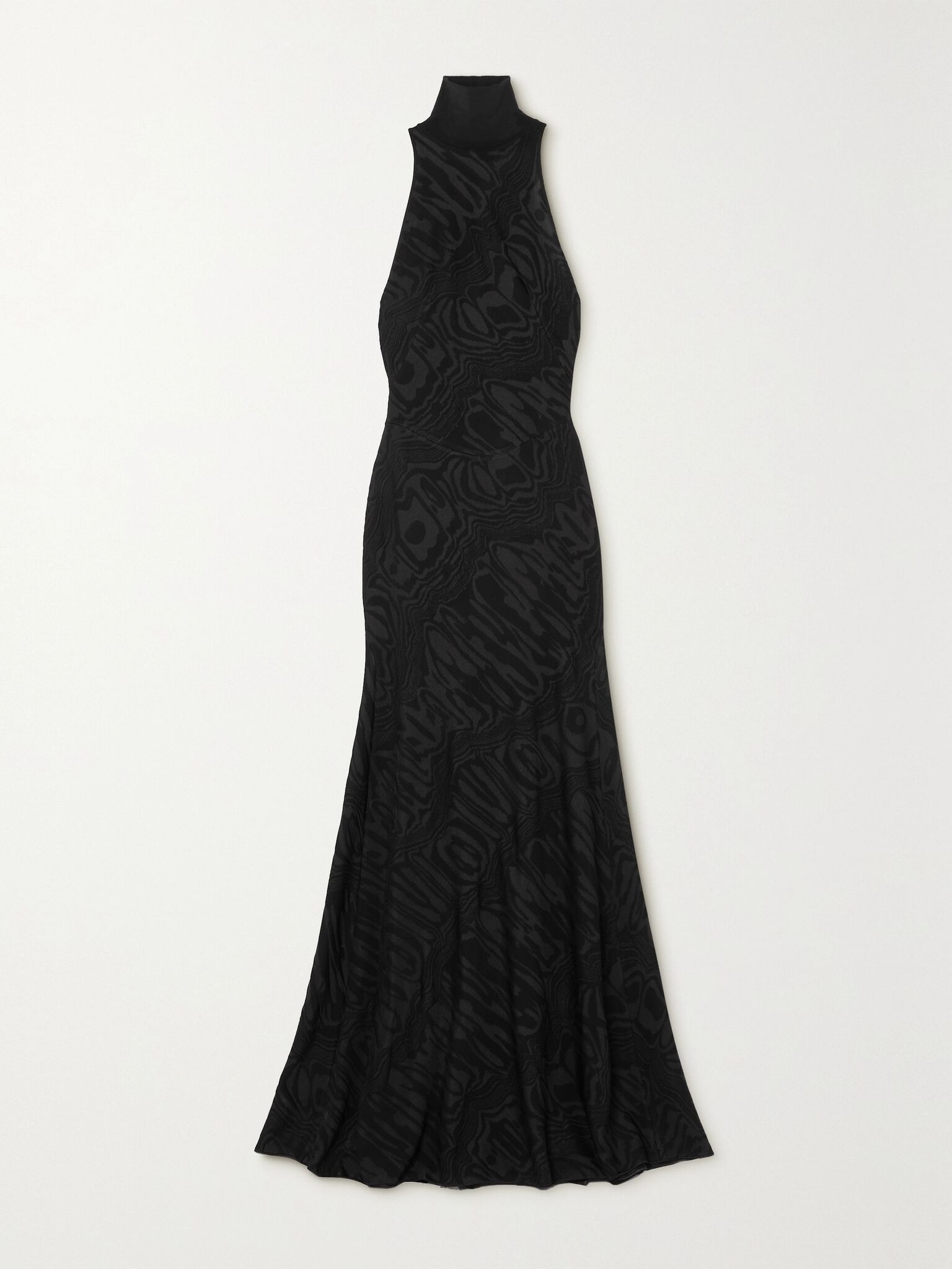 Alaia's 'Archetypes' collection re-imagines iconic designs from the house's archives. Jacquard-knitted with swirls, this gown has a high neck and gently skims the figure before flaring out at the hem. Complement yours with drop earrings. Size & Fit - Fits true to size, take your normal size - Designed for a close fit - Mid-weight knit - Model is 177cm/ 5'10" and is wearing a FR 34 Details & Care - Black jacquard-knit - 63% viscose, 32% polyester, 4% polyamide, 1% polyurethane - Slips on - Dry clean