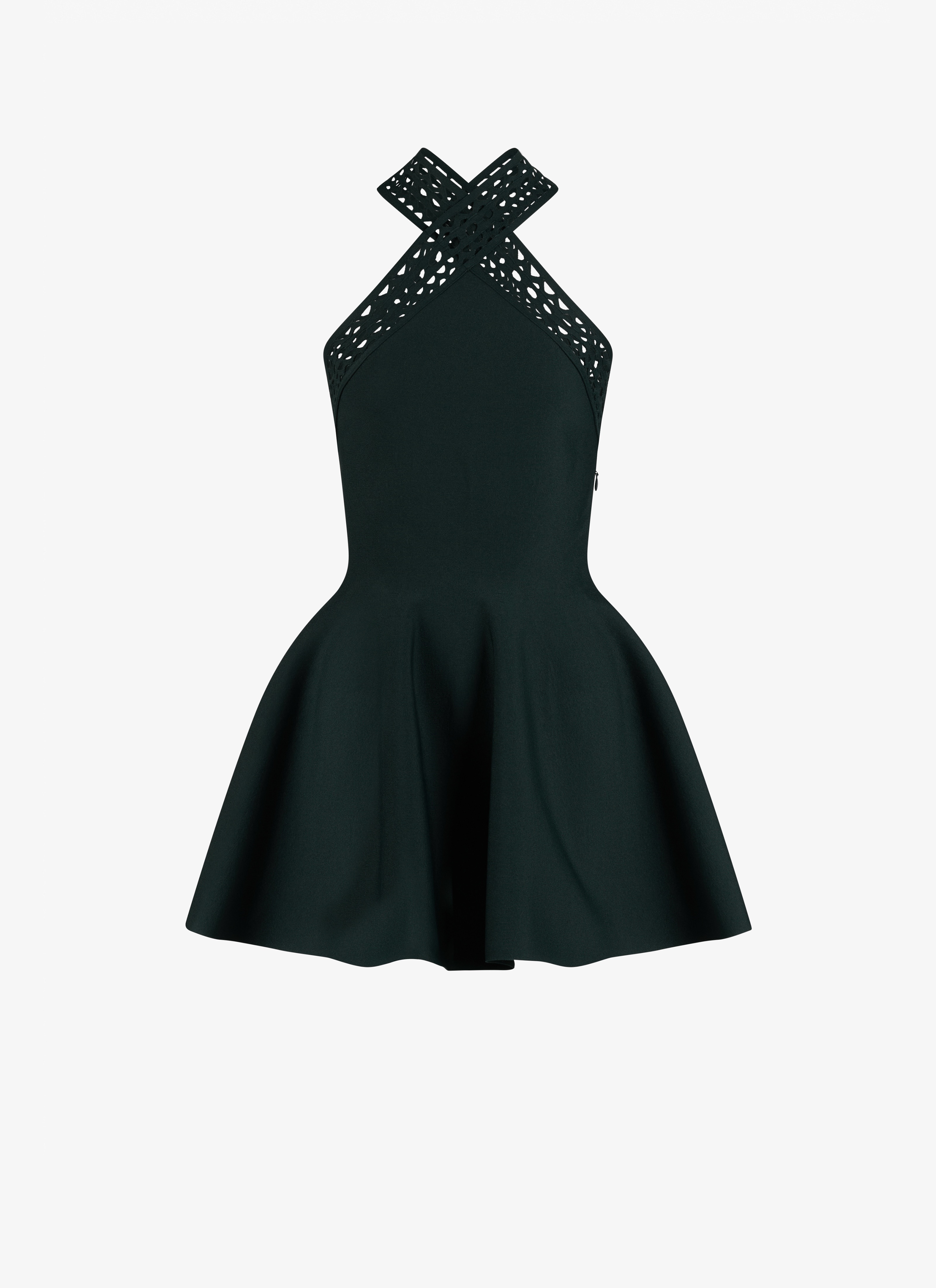 skater vienne dress voluminous skirt crossed neckline with cut-out vienne bands knitted in matt viscose made in italy DETAILS COMPOSITION: 75% VISCOSE ADDITIONAL MATERIAL: 25% POLYESTER PRODUCT REFERENCE: AA9R23424M774 - 662
