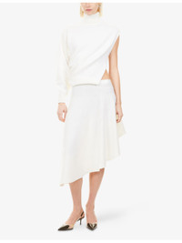 PRODUCT DETAILS - Alaia wool midi dress - 100% wool - Regular fit, turtle neck, long sleeve, asymmetric design, side cut out - Dry clean - Made in Italy - True to size - Size UK 8: length 62in / 157cm - Model is 5ft 10in/1.78m and wears a size UK 8 - Midweight, slight stretch Ref: R04558211