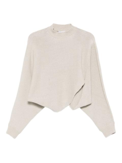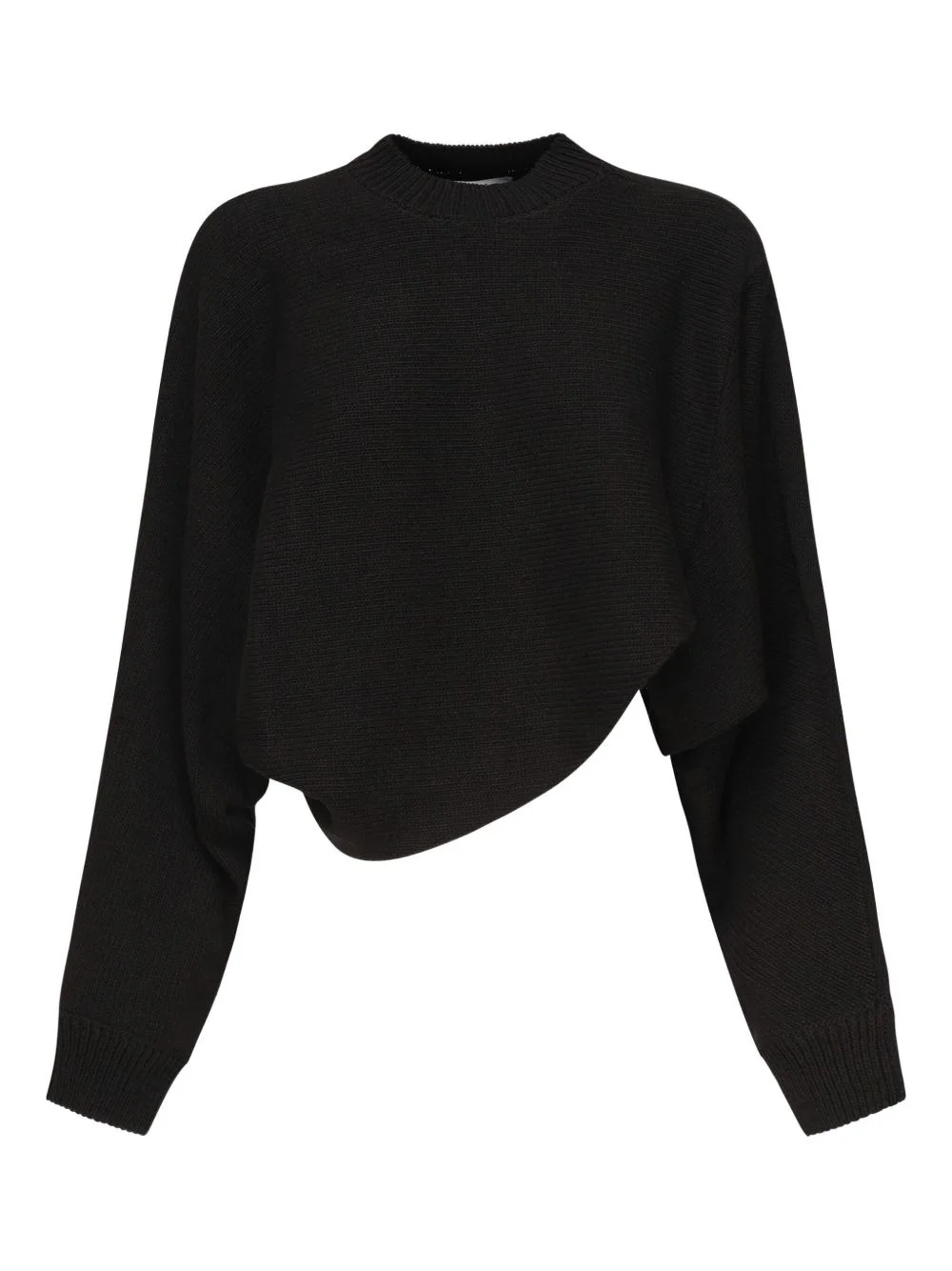asymmetric-hem knit sweater Highlights - Black - Linen-cotton blend - Asymmetric hem - Round neck - Long sleeves Made in Italy Composition Linen/Flax 63%, Cotton 37% Washing instructions Read Manufacturer Guidelines