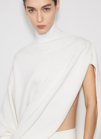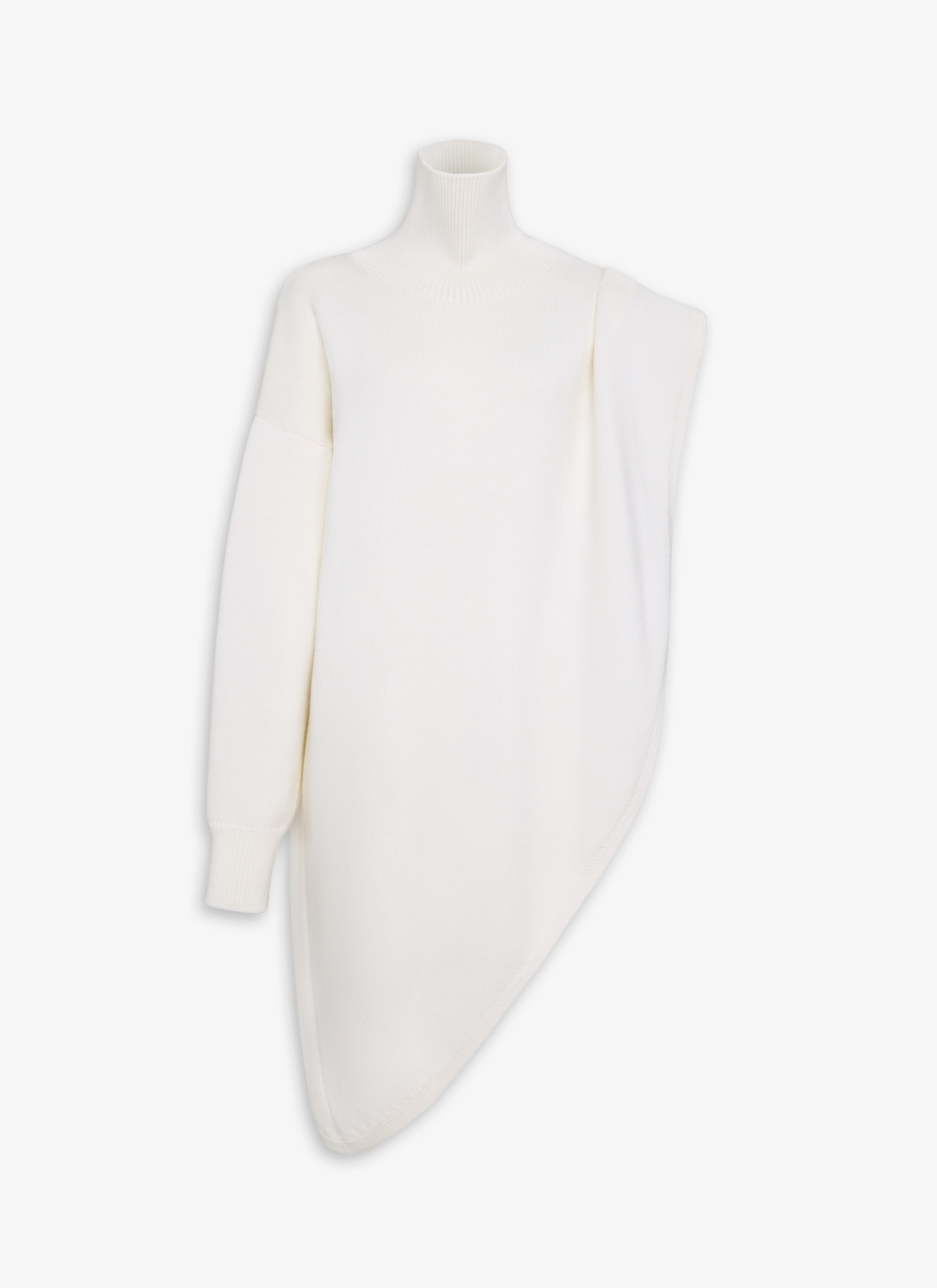 Knitted asymmetrical jumper High neck Loose fit Long single sleeve and cape Diagonal hem Knitted in a compact merino wool Made in Italy DETAILS COMPOSITION: 100% WOOL PRODUCT REFERENCE: AA9S03116M919 - 054