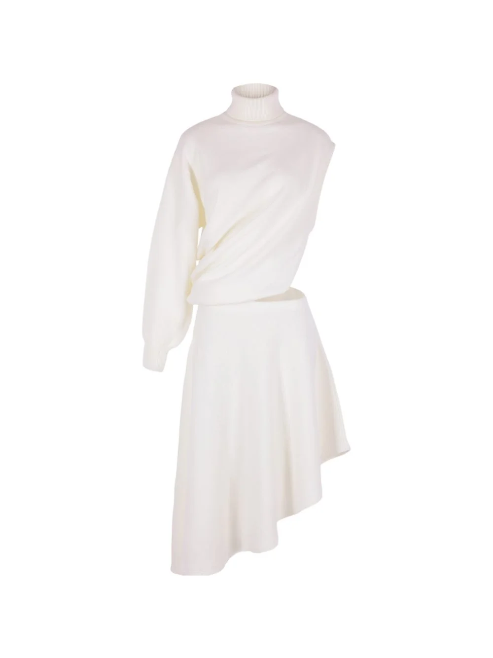 asymmetric mini dress Highlights - White - Roll neck - One long sleeve - Asymmetric hem - Open waist Made in Italy Composition Virgin Wool 100% Washing instructions Read Manufacturer Guidelines