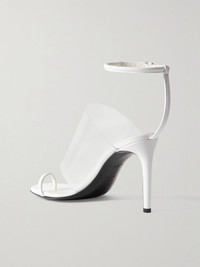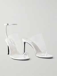 Presented at the Solomon R. Guggenheim Museum, Alaia’s Spring '25 collection is inspired by the spirit of New York and the world of sculptural art. These asymmetric sandals are made from glossy patent-leather with clear PVC straps across the middle and slender stiletto heels. Size & Fit - Fits true to size, take your normal size - Only available in full sizes, go up to the nearest whole size if you take a half size - Those with wide feet may wish to take the next size up - Italian sizing Details & Care - White patent-leather (Calf), clear PVC - Buckle-fastening ankle strap
