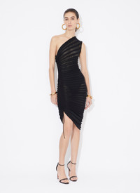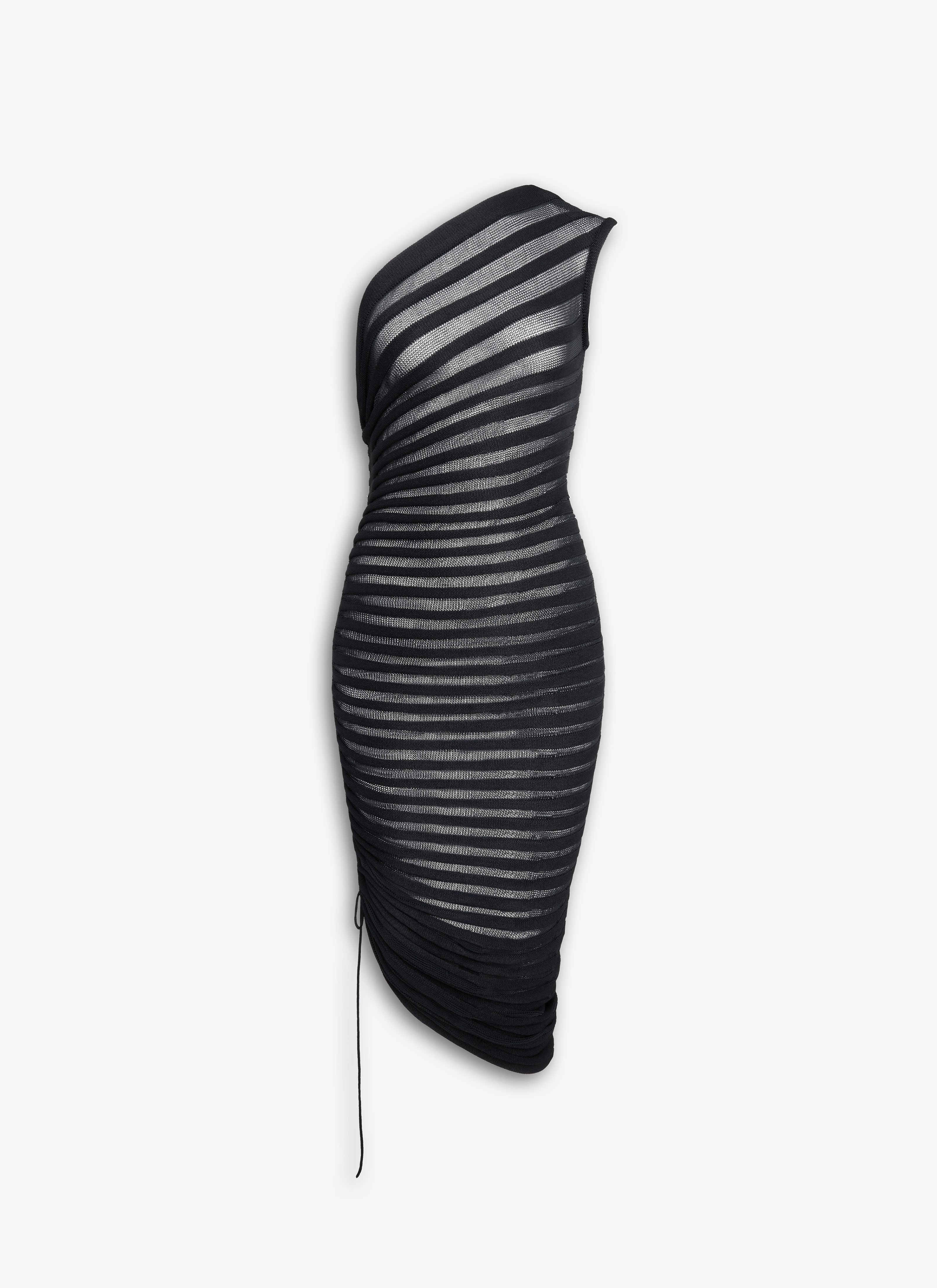 Asymmetrical skeleton dress Draw string at the sides to adjust length contrasted sheer and opaque knit Knitted in a medium weight viscose and corded viscose Made in Italy DETAILS COMPOSITION: 56% VISCOSE, 27% POLYAMIDE, 16% COTTON, 1% POLYURETHANE PRODUCT REFERENCE: AA9R24656M751 - 995