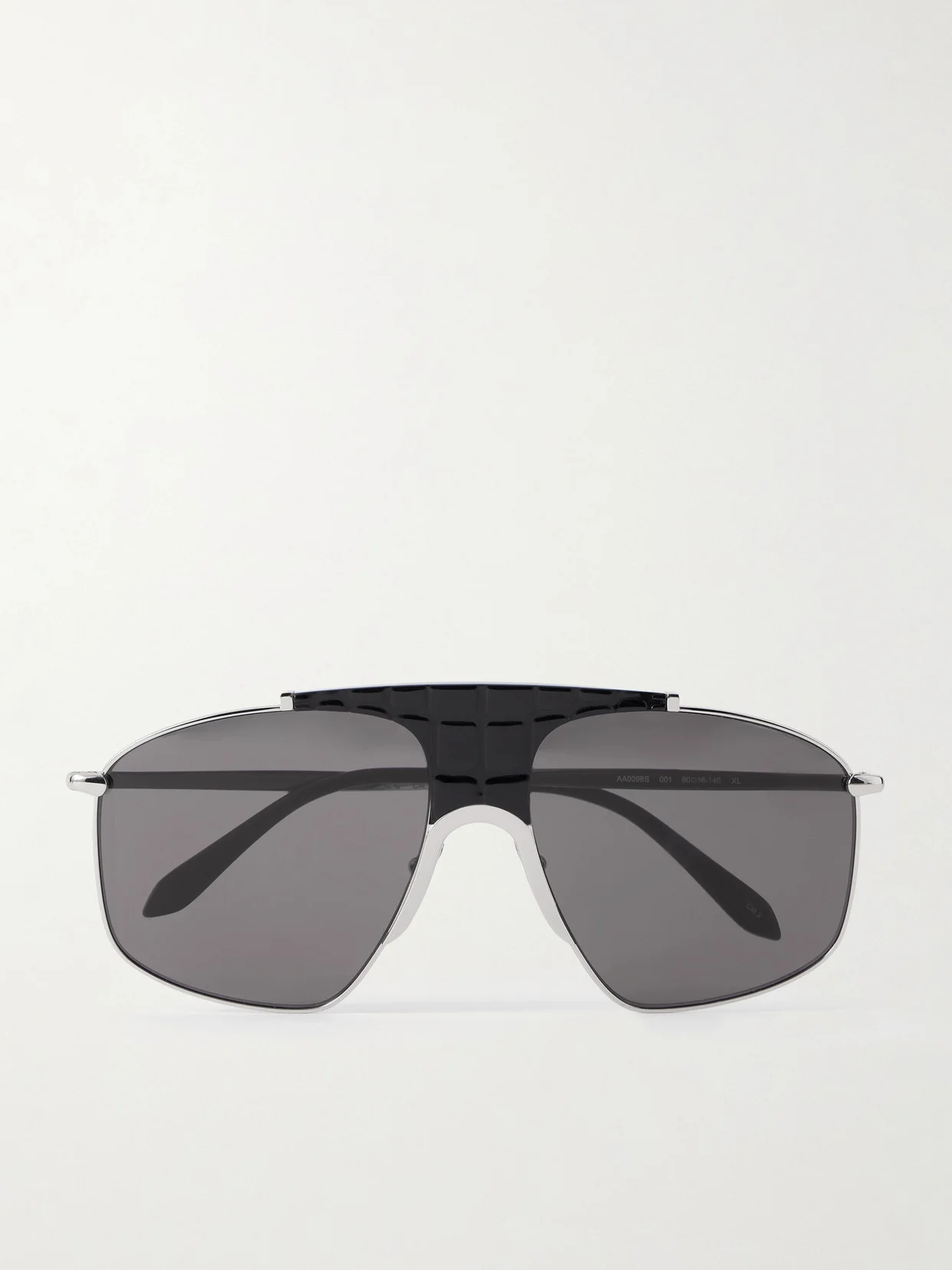 ALAIA Eyewear is famed for directional, forward-thinking design. Made from silver-tone metal, these sunglasses have aviator-style lenses with an acetate bridge, which is mirrored at the end of the glinting arms.
