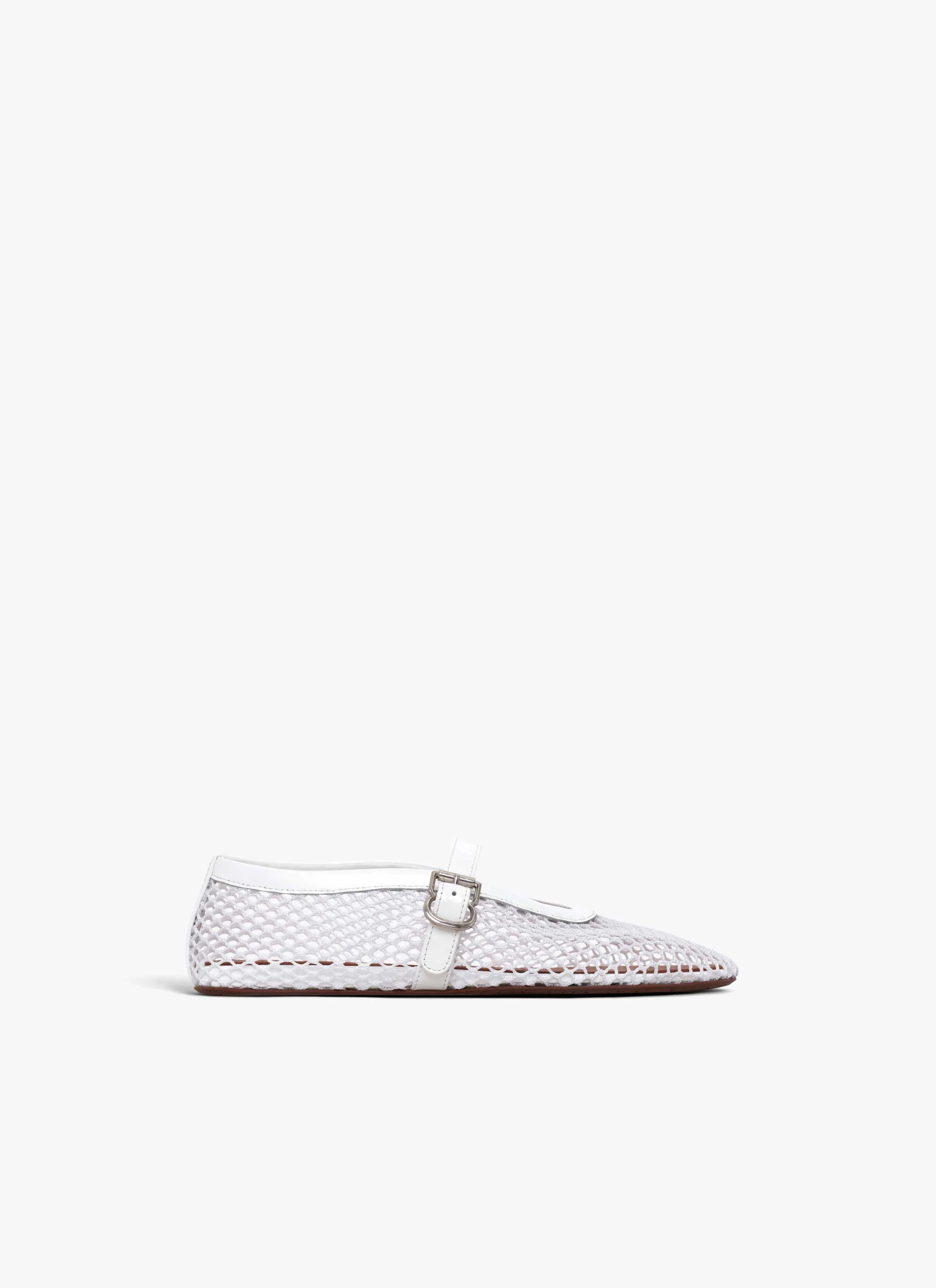 ballet flats in fishnet inspired by classical japanese shoes rubber sole made in italy DETAILS COMPOSITION: 90% POLYAMIDE, 10% CALFSKIN LINING: 100% LAMBSKIN SOLE: 90% CALF LEATHER, 10% RUBBER ADDITIONAL MATERIAL: 100% ZAMAK PRODUCT REFERENCE: AA3A029TK007 - 010