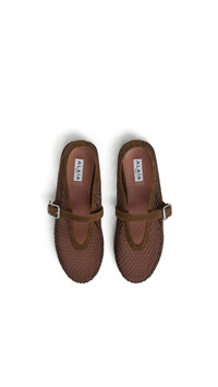DETAILS Signature Alaia ballet flats inspired by classical Japanese shoes Buckle strap on top Rubber sole Fishnet textile and suede goatskin leather Made in Italy MATERIALS MAIN MATERIAL: 50% POLYAMIDE, 50% POLYESTER SECONDARY MATERIAL: 100% GOAT SUEDE LEATHER MAIN LINING: 100% GOAT SUEDE LEATHER OUTER SOLE: 100% RUBBER BUCKLE: 100% ZAMAK PRODUCT REFERENCE: AA3A029TK061-A47
