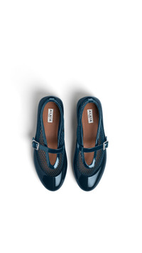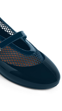 DETAILS Signature Alaia ballet flats with removable rubber overshoes Buckle strap on top Fishnet textile, patent calfskin and shiny rubber Made in Italy MATERIALS Highlights MAIN MATERIAL:45% POLYESTER, 45% RUBBER, 10% CALFSKIN LEATHER MAIN LINING: 95% LAMBSKIN LEATHER, 5% GOATSKIN LEATHER SOLE: 100% RUBBER BUCKLE: 100% ZAMAK PRODUCT REFERENCE: AA3A1023A022-516