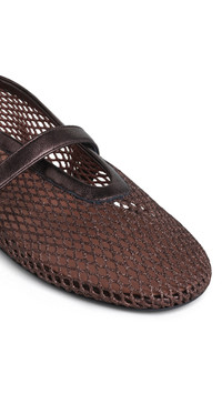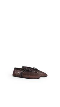 DETAILS Signature Alaia ballet flats inspired by classical Japanese shoes Buckle strap on top Rubber sole Glittery fishnet textile and laminated nappa leather Made in Italy MATERIALS MAIN MATERIAL: 82% POLYAMIDE, 18% POLYESTER SECONDARY MATERIAL: 100% LAMB LEATHER MAIN LINING: 100% LAMB LEATHER OUTER SOLE: 100% RUBBER BUCKLE: 100% ZAMAK PRODUCT REFERENCE: AA3A029TK028-199