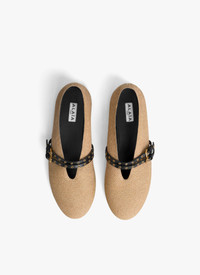 Ballet flats inspired by classical Japanese shoes CUT FROM PAPER STRAW PANNELS THAT ARE ARTISANALLY WEAVED AND ASSEMBLED TOGETHER Leather eyelet double strap, round toes, rubber sole & calfskin leather lining Made in Italy DETAILS MAIN LINING:100%LAMBSKIN MAIN APPLICATION:100% BRASS SOLE:100% RUBBER UPPER MATERIAL 1:91% PAPER 9% POLYESTER UPPER MATERIAL 2:100% CALFSKIN LEATHER PRODUCT REFERENCE : AA3A058TK036 - 113
