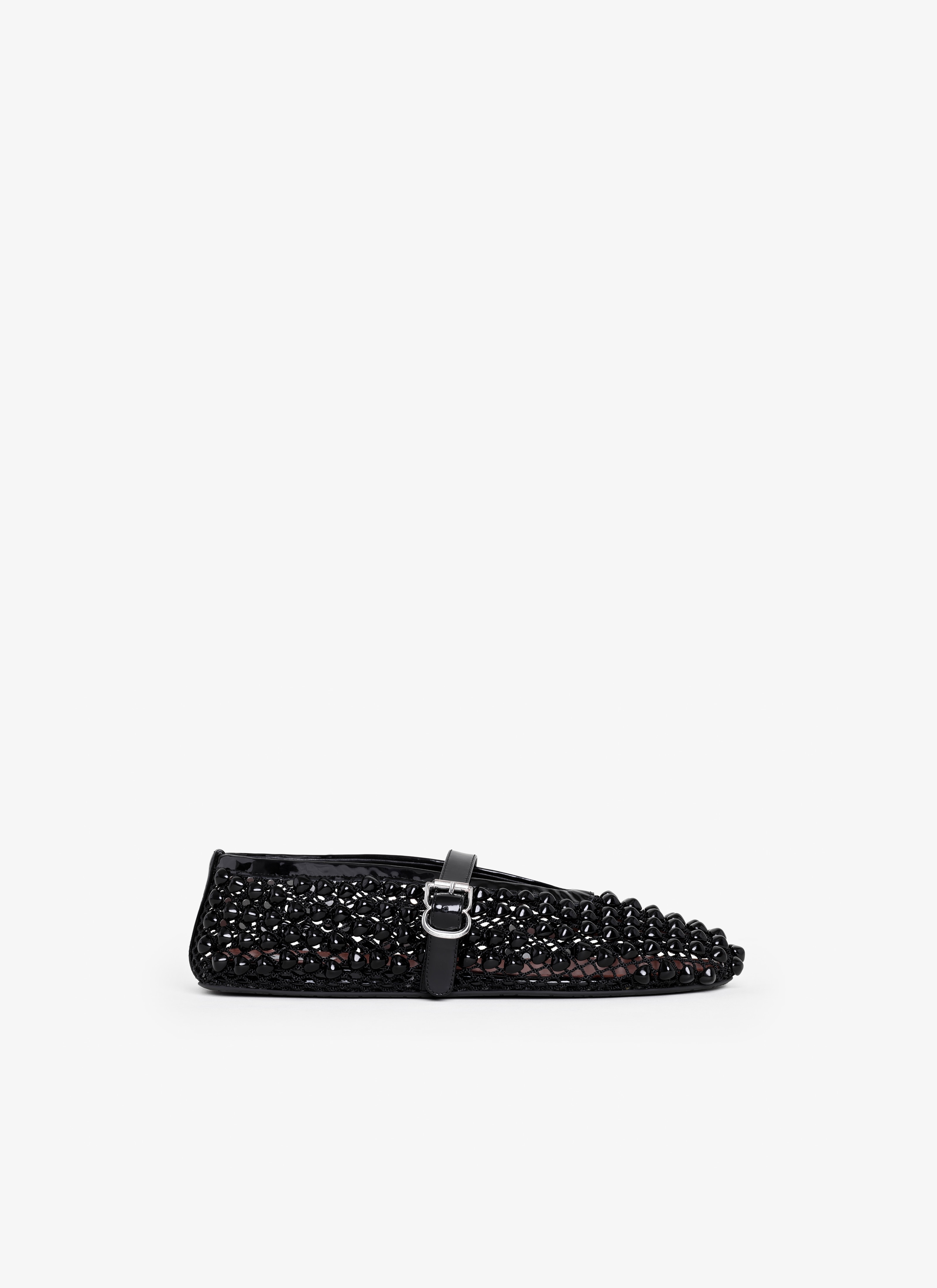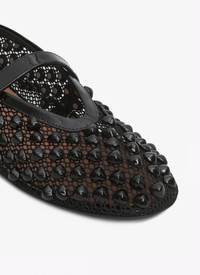 Ballet flats Mesh embellished with pyramid studs Rubber sole Made in Italy DETAILS MAIN LINING:100% LAMBSKIN SOLE:100% RUBBER UPPER MATERIAL 1:100% POLYAMIDE UPPER MATERIAL 2:100% CALF LEATHER BUCKLE: 100% ZAMAK PRODUCT REFERENCE: AA3A029TK033 - 999