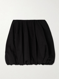Gathered cotton-poplin mini skirt Black