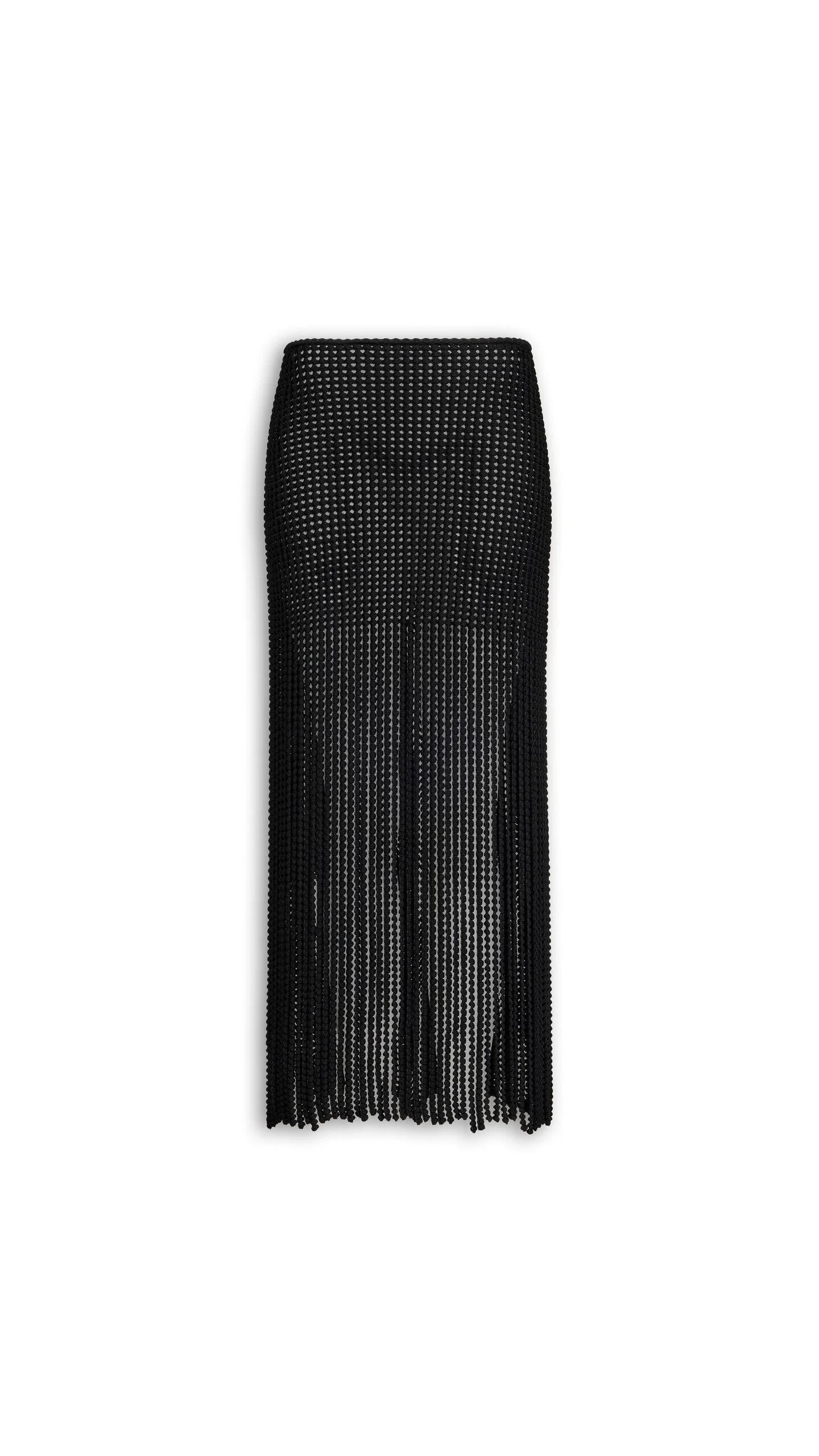 DETAILS Beaded skirt in bead-knit fabric High waisted, elasticated waistband, raw edge, ankle length Thicker knitting on the upper half of the skirt for more coverage Fitted cut Made in Italy MATERIALS MAIN MATERIAL: 85% VISCOSE, 8% POLYAMIDE, 6% POLYPROPYLEN, 1% ELASTANE WAISTBAND: 92% VISCOSE, 4% POLYAMIDE, 4% POLYPROPYLEN PRODUCT REFERENCE: AA9J2536K181C-995
