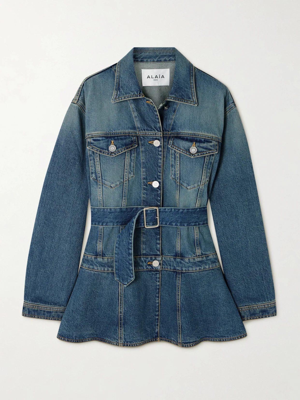 Alaia's belted jacket has a ruffled peplum hem, giving the classic utilitarian style a softer, sweeter feel. It's cut from panels of denim for a loose fit and faded throughout. Match your jeans to the vintage-inspired wash.