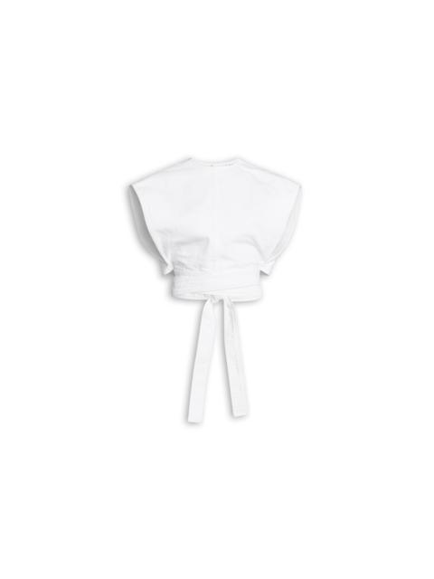 DETAILS Belted top in optic white denim with rinse finish Crew neckline, sleeveless, button closure at the back, integrated wrap belt Boxy fit Made in Italy MATERIALS MAIN MATERIAL: 100% COTTON PRODUCT REFERENCE: AA9H1482D002C-000
