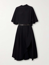 EDITORS'NOTES Alaia’s midi dress is the perfect example of interest and intrigue. It’s cut in an asymmetric profile from smooth cady and wrapped with a chunky leather belt. The fluid, draped layers are at their most beautiful in full movement, so style yours with heels to enhance the effect. SIZE & FIT Model measurements: - Fits true to size, take your normal size - Designed for a relaxed fit, use the belt to cinch in at the waist - Lightweight, fluid, slightly stretchy fabric - Model is 177cm/ 5'10" and is wearing a FR 36 - Bust: 85cm/ 33.5" - Waist: 65cm/ 25.5" - Hip: 91cm/ 36" DETAILS & CARE - Black cady and leather - Concealed zip fastening along side - 96% viscose, 4% elastane; trim: 100% leather (Lamb)