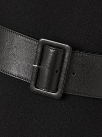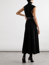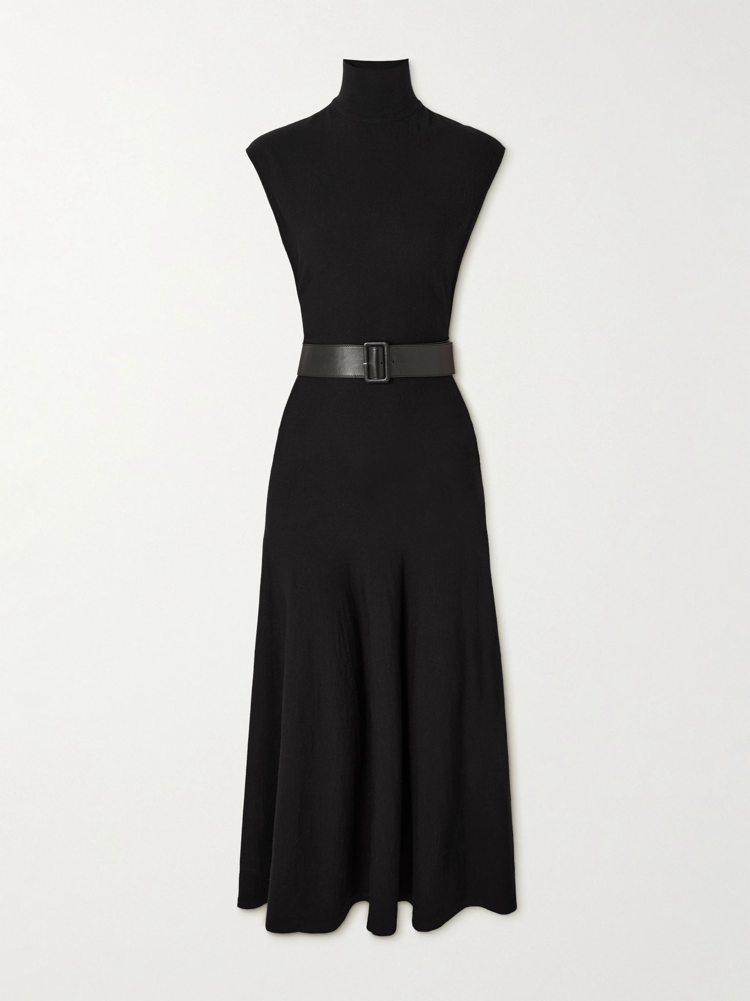 Belted leather-trimmed wool-blend turtleneck midi dress Black
