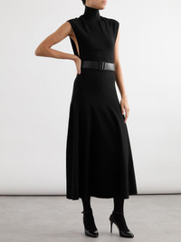 Alaia's designs are effortlessly elegant. This turtleneck midi dress is cut from a soft wool-blend and features a chunky leather belt to define your shape. Size & Fit - Fits true to size, take your normal size - Designed to be fitted at the bust and waist, slightly loose at the hip - Mid-weight knit - Model is 175cm/ 5'9" and is wearing a FR 34 Details & Care - Black wool-blend and leather - Slips on - 86% wool, 13% polyester, 1% polyamide; trim: 100% leather (Lamb)
