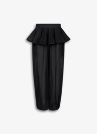 Peplum pants with skirt overlay in fine viscose knit Mid-rise, wide leg with removable elastic cuff strings Loose fit Made in Italy DETAILS MAIN MATERIAL: 74% VISCOSE 25% POLYAMIDE 1% ELASTANE PRODUCT REFERENCE: AA9P1174K053A - 995