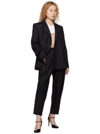 Tapered wool herringbone trousers. · Low-rise · Belt loops · Three-pocket styling · Zip-fly · Pleats at front · Darts at curved outseams · Adjustable button tabs at back waist · Pinched seams at back · Unlined Supplier color: Black