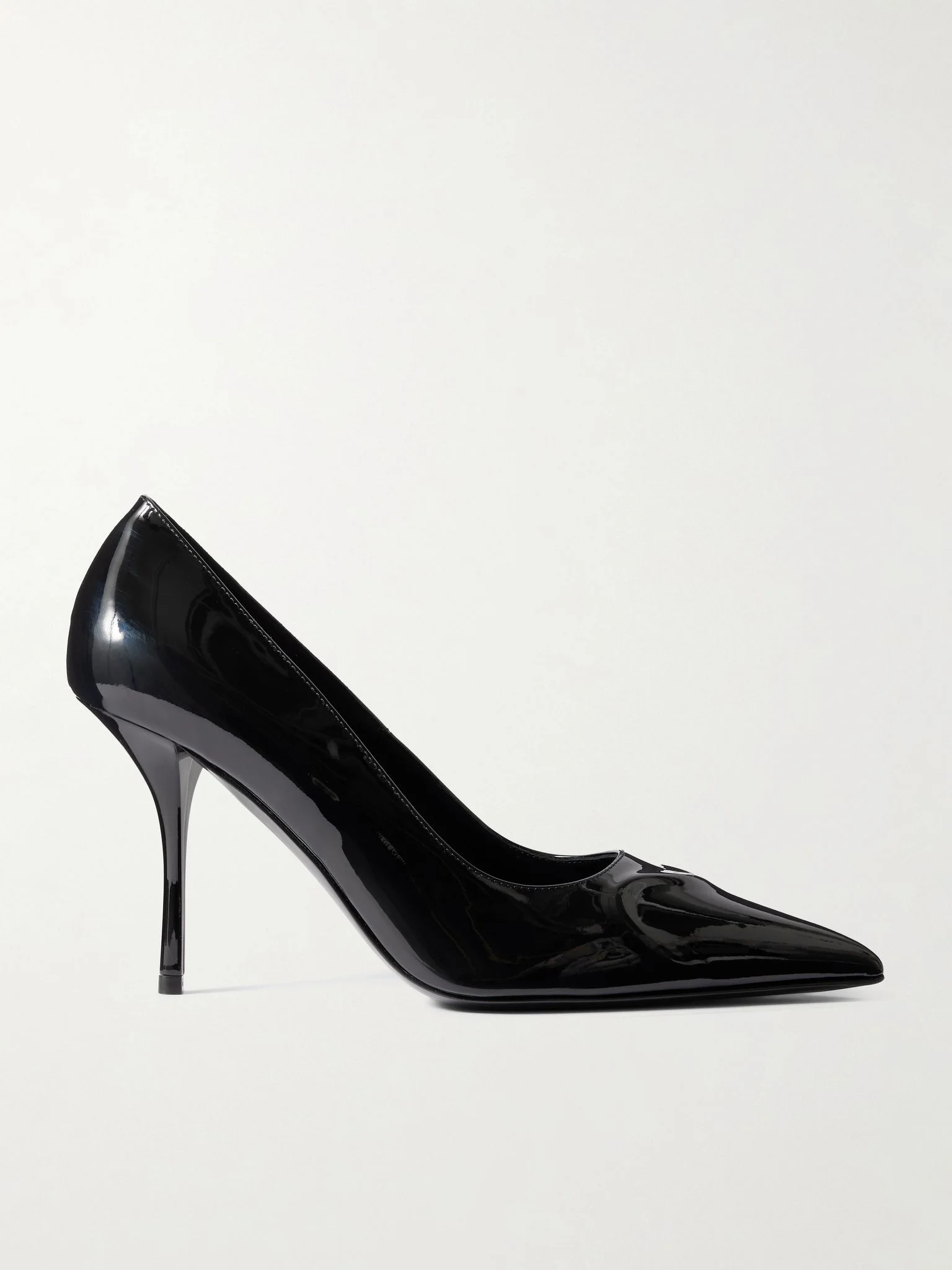Alaia's pumps are guaranteed to turn heads. They've been crafted in Italy from glossy patent-leather and have distinctive heart-shaped ridges across the sharply pointed toes. Slender stiletto heels and a low-cut vamp give the illusion of taller proportions. Size & Fit - Fits true to size, take your normal size - Only available in full sizes, go up to the nearest whole size if you take a half size - Narrow at the toe - Italian sizing Details & Care - Heel measures approximately 90mm/ 3.5 inches - Black patent-leather (Lamb) - Slip on