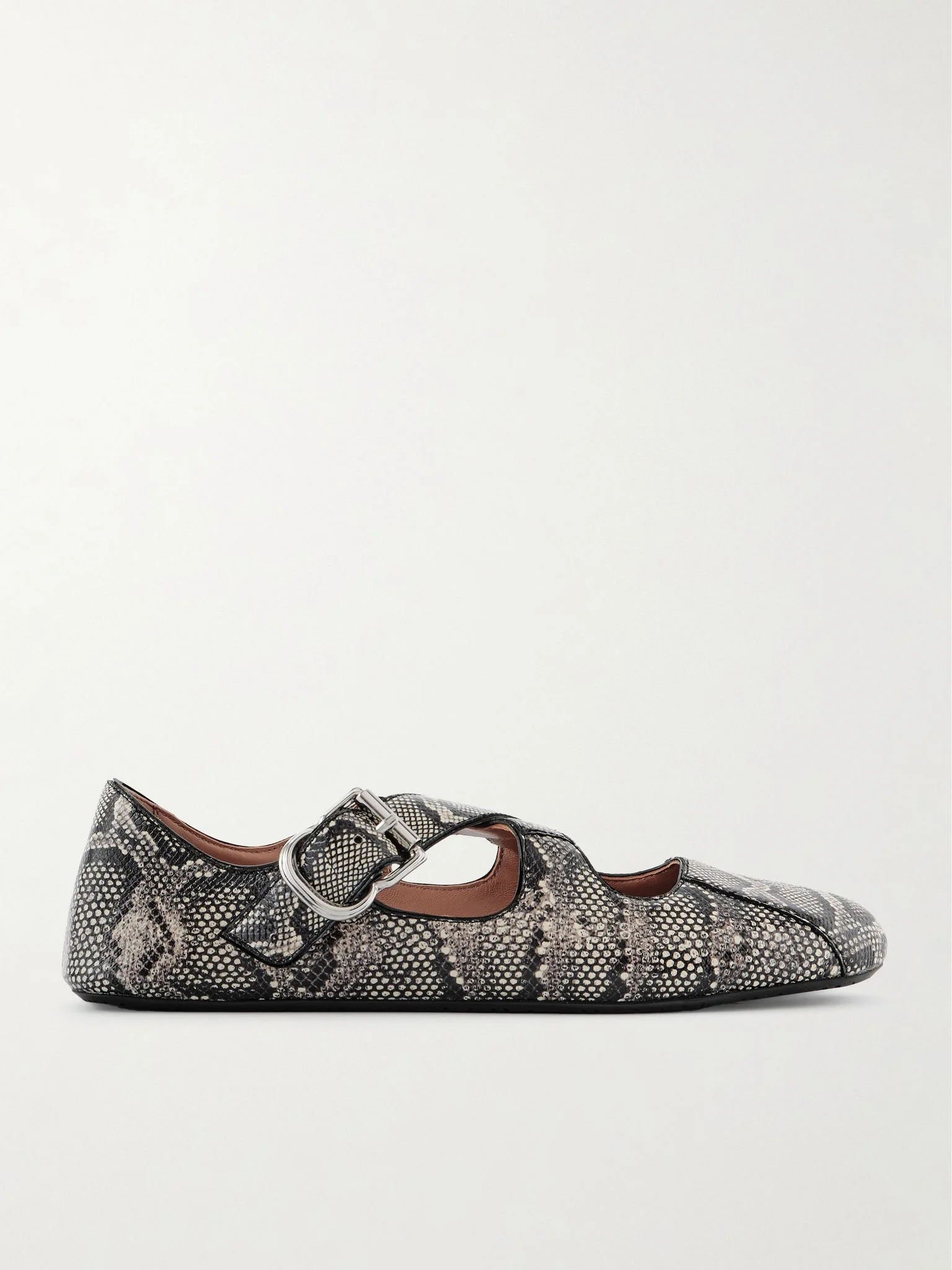 Criss Cross leather-trimmed snakeskin ballet flats Snake print
